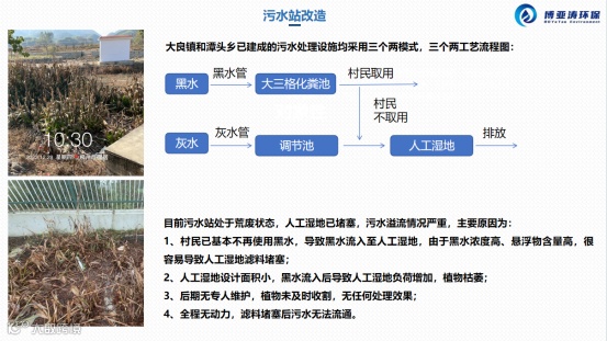 为了解决这些问题,融安县积极响应《关于进一步推进农村污水治理的指导意见》采取整改行动,并委托博亚涛团队(设计-施工-运维一体化)对本污水站进行评估和改造工作,团队经过详细调研和充分征求村民意见,将利用原有的污水管网及大三格化粪池,采用FBBR处理工艺取代人工湿地处理工艺,将其改造成全国首创零电耗“两微”智能模式,即微生物生态处理技术、微建设和微成本,同时通过智能管理系统进行监控和调节。