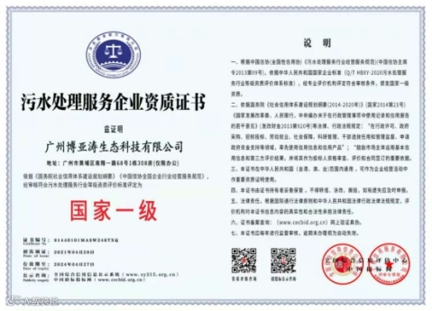 公司资质齐全,已取得质量管理体系认证证书、环境管理体系认证证书、职业健康安全管理体系认证证书、市政公共工程施工总承包资质、安全生产证、环保工程专业承包资质、环卫承包运营、污水承包运营资质。已通过的发明专利及实用新型专利共20余个,计算机软著8个,受理中的专利60余个,商标注册已经完成。