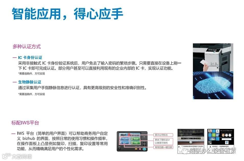 在安全性和操作易用性方面,它的智能操作面板和用户体验页面用户轻松掌握复合机的使用方法。同时,配备了一种可升级的的安全系统,可通过密码锁屏等方式保护文件不被未授权人员查看或泄露。