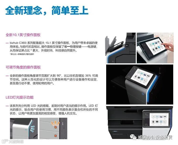 柯尼卡美能达bizhub C360i系列-A3彩色多功能复合机是适用于中大型企业和公共部门的办公设备。它可以满足日常文档处理的各种需求,包括打印、扫描和复印个功能模块。下面详细介绍该设备的主要技术指标和功能特性,帮助您更好地了解它的优势和应用场景。