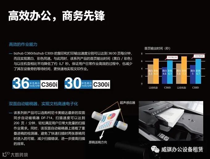 该设备在打印速度方面表现出色,每分钟最大输出可达到36页,并支持双面文档打印任务。这使得它不仅能够提供高效的打印服务,同时也可以节省纸张和处理时间,符合现代企业对节能和环保的需求。同时,C360i的打印分辨率为600 x 600 dpi,在文本和图像处理中表现出色,清晰可见。