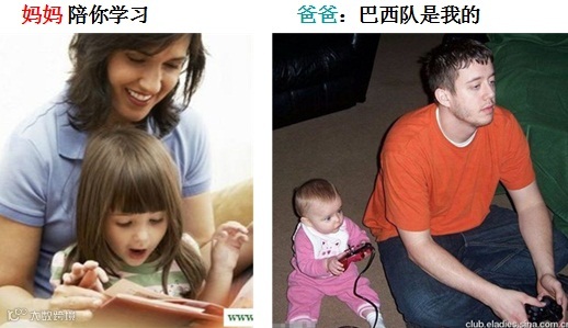 妈妈教你很多知识,爸爸也可以教你踢球啊