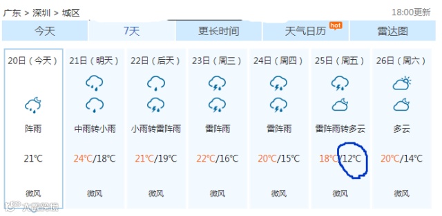 深圳 最低 12℃