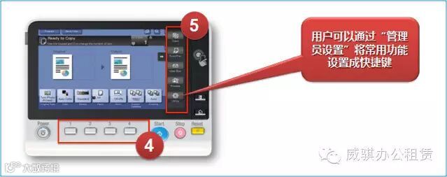 此外,bizhub C368 系列还增加了功能注册键的数量,除了面板下端的四个注册键以外,面板右侧还新增了智能滑动菜单,用户最多可注册9个常用功能(包括复印、传真、缩放以及数字软键盘等),告别频繁调用菜单的烦恼。