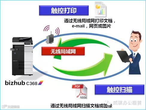 而通过无线LAN AP(Access Point)的接入点模式,bizhub C368 新品还可与移动设备之间直接连接,无需涉及现有无线LAN。由于这种连接与现有的公司网络分离,所以个人移动设备均可直接连接至设备,同时用户也不必担心原有网络的安全问题。