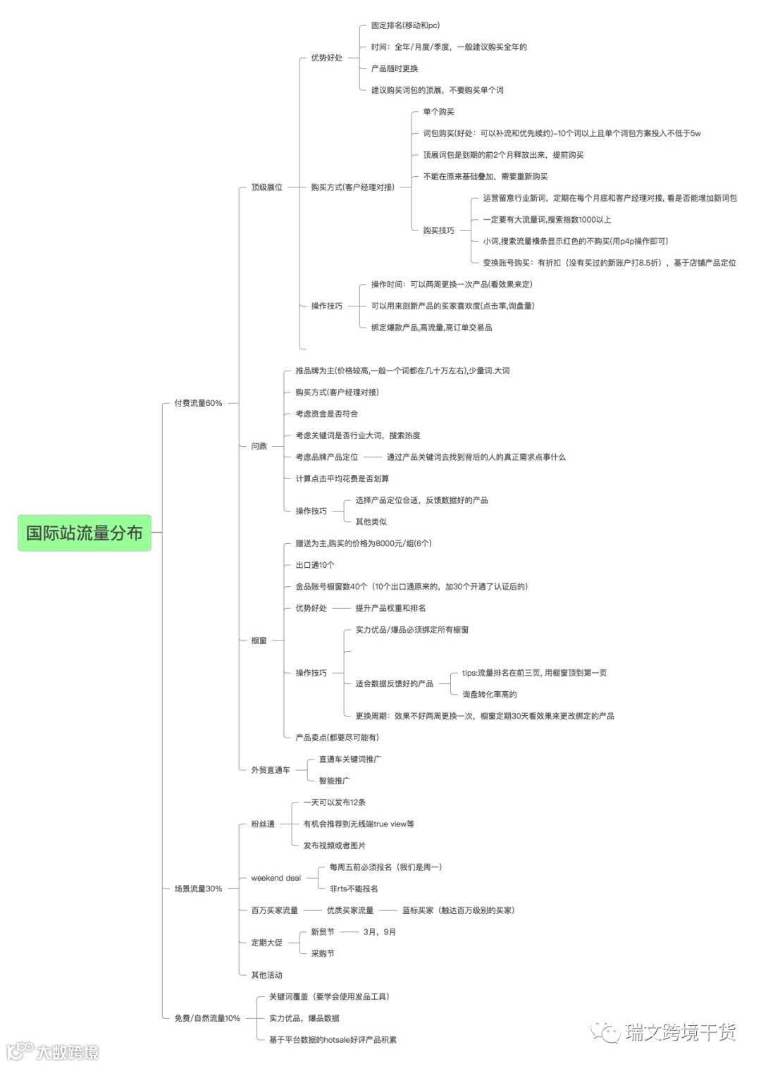 站内流量的分层已经成了定局,分为了60%的付费流量,30%的活动流量以及10%的自然流量,诚然,空手套白狼,低成本撬动大生意的模式在这个平台算是有点难了,那么站内的流量该怎么玩,下面的思维导图从各个细节详细说明。如果需要原图。可以关注后,找小编拿哦!!!