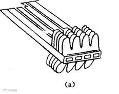 (2)管带式它是由多孔扁管与S形散热带焊接而成,如下图所示。管带式冷凝器的散热效果比管片式冷凝器好一些(一般可高10%左右〉,但工艺复杂,焊接难度大,且材料要求高。一般用在小型汽车的制冷装置上。