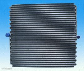 (3)鳍片式它是在扁平的多通管道表面直接凸出鳍片状散热片,然后装配成冷凝器,如下图所示。由于散热鳍片与管子为一个整体,因而不存在接触热阻,故散热性能好;另外,管、片之间无需复杂的焊接工艺,加工性好,节省材料,而且抗振性也特别好。所以,是目前较先进的汽车空调冷凝器。