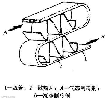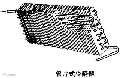 (1)管片式它是由铜质或铝质圆管套上散热片组成,如图所示。片与管组装后,经胀管处理,使散热片与散热管紧密接触,使之成为冷凝器总成。这种冷凝器结构比较简单,加工方便,但散热效果较差。一般用在大中型客车的制冷装置上。