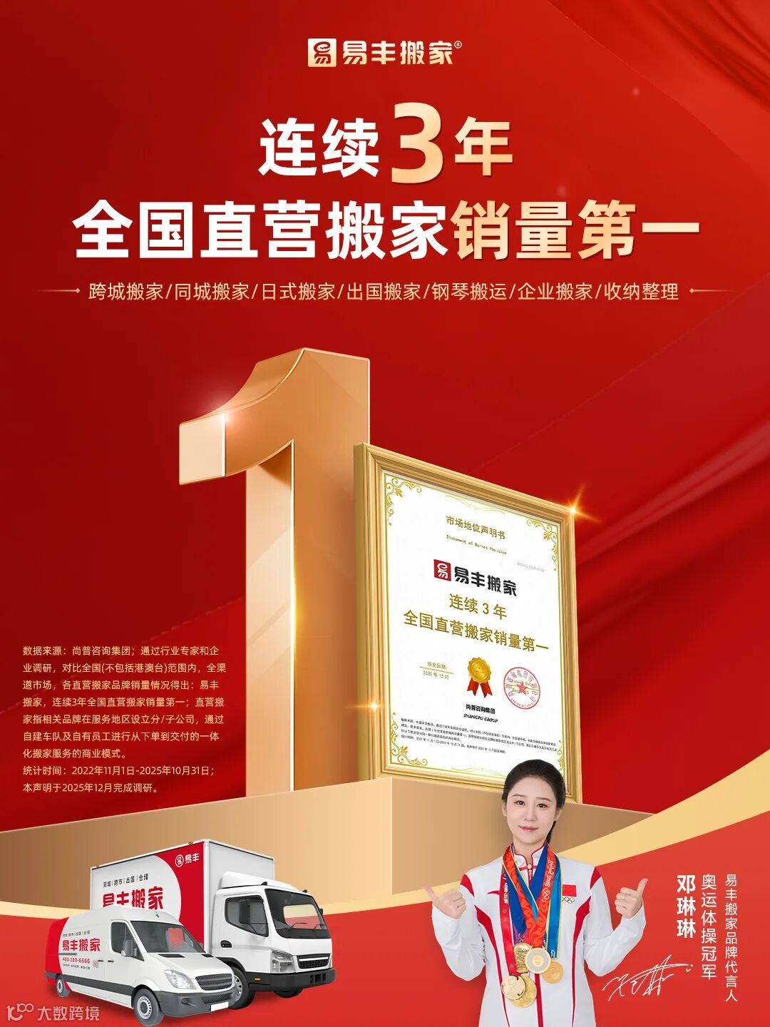 根据尚普咨询集团最新调研显示,在2022年11月1日至2025年10月31日期间,易丰搬家连续3年稳居全国直营搬家销量第一!🏆