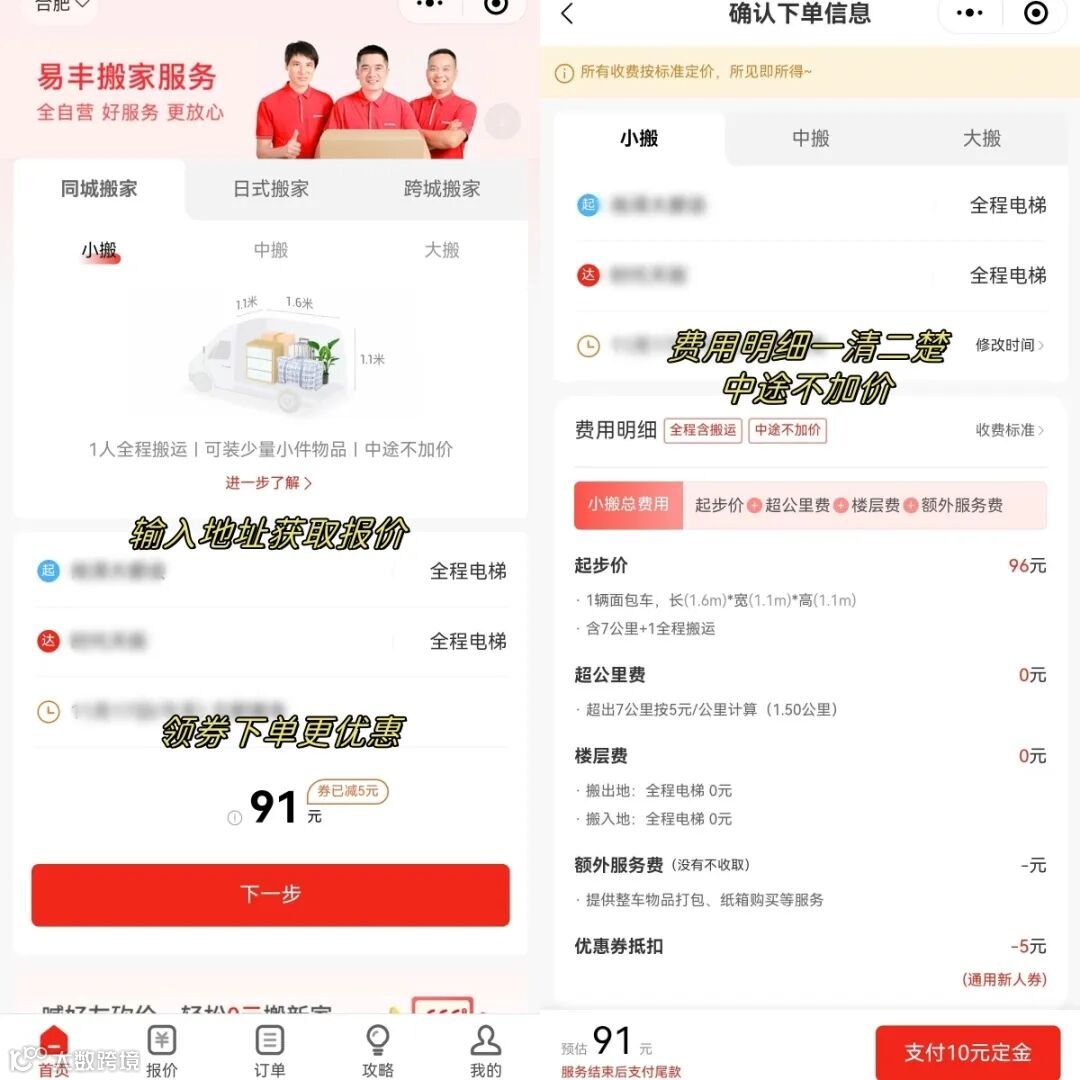 (ps:易丰搬家小程序中下单即可报价,不产生额外费用的话,基本上属于一口价搬家哦!)