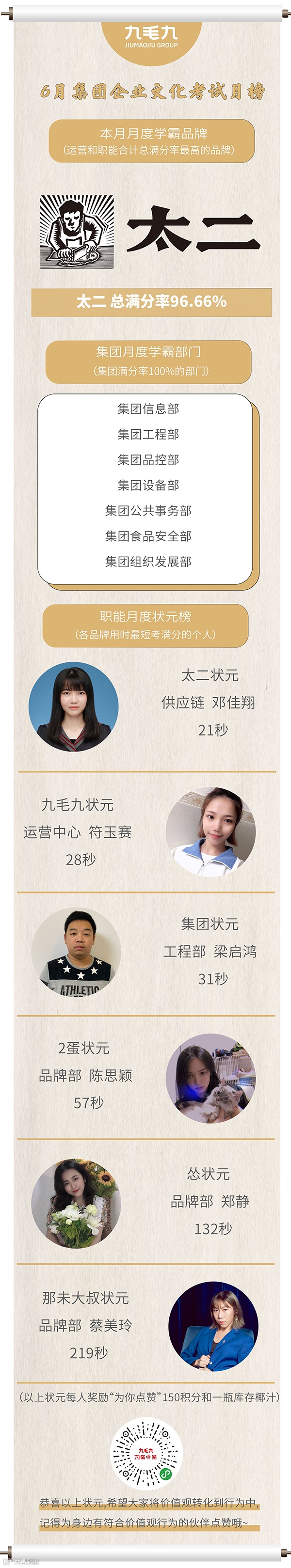 6月集团企业文化考试月榜