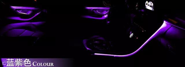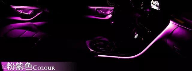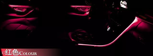 氛围灯是高亮度散光光导LED氛围灯。装饰车厢内饰照明灯。分两款:3色/12色氛围灯,调节颜色在中控屏幕显示,(冰海蓝,经典橙,闪耀银),亮度可调高低。支持原车旋钮按键调节控制,需要编程。