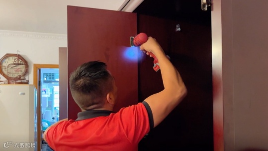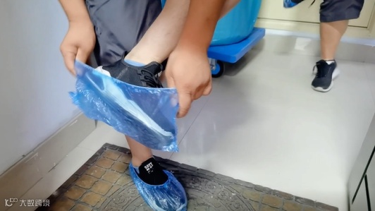 师傅们在正式进门以前,会统一穿戴好手套、鞋套,确保不将更多的灰尘带入到顾客家中。