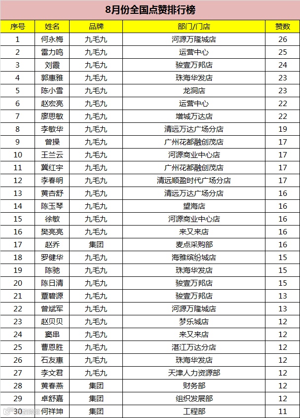 全国点赞排行榜