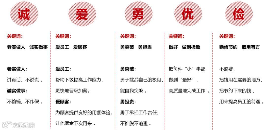 “企业价值观是企业评判事情、考察人才的首要标准,是九毛九集团伙伴必须遵守的工作准则。”