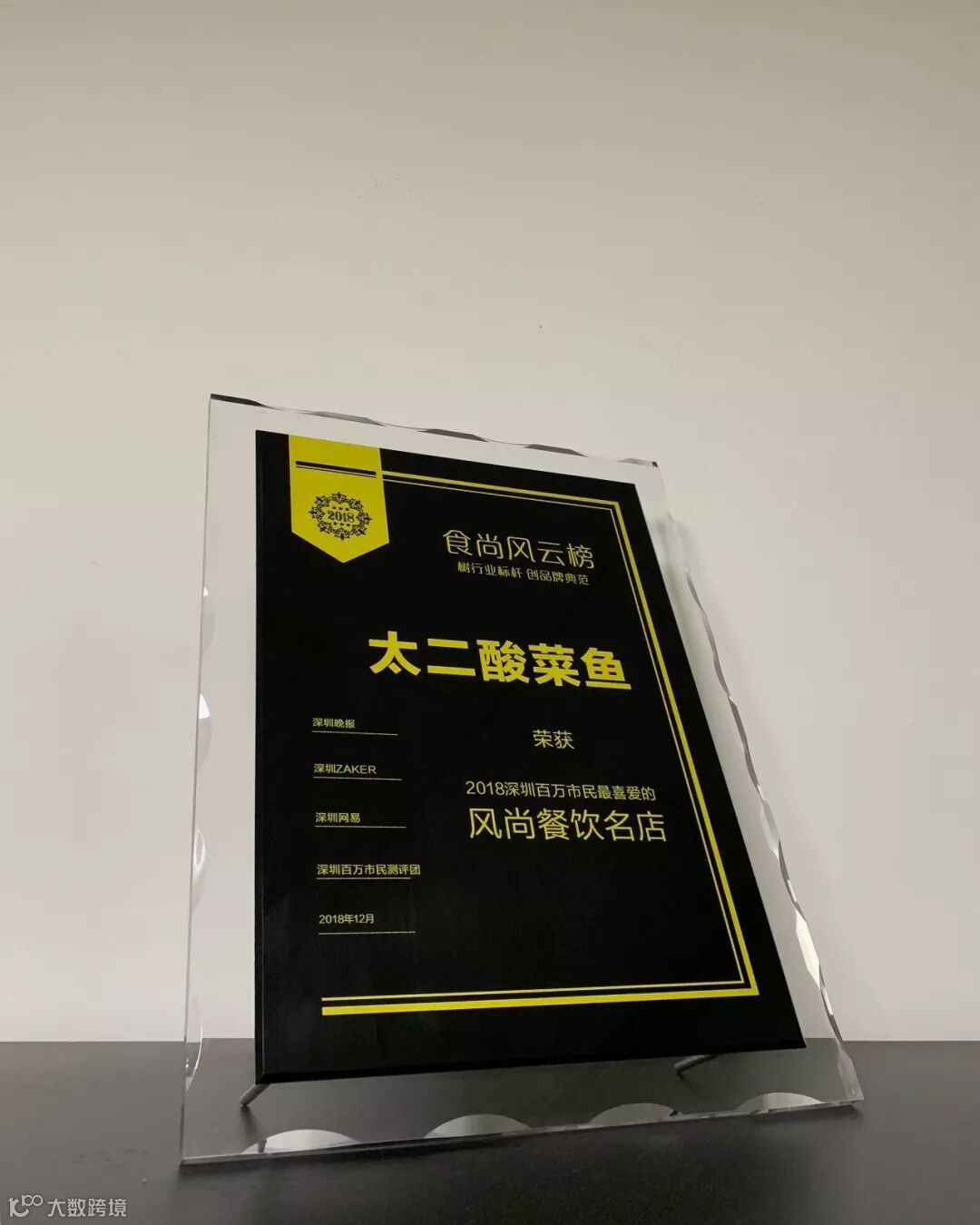 太二获得由深圳晚报、深圳ZAKER、深圳网易及深圳百万市民测评团携手评选出的2018年度《食尚风云榜》深圳百万市民最喜爱的“风尚餐饮名店”。
