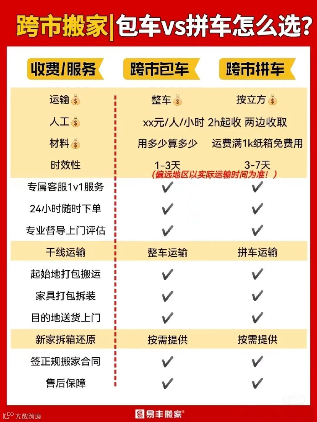 说来说去,十有八九都是跟搬家公司的费用和服务有关。接下来,小丰就根据易丰搬家的跨市收费标准来给大家详细解答一下。