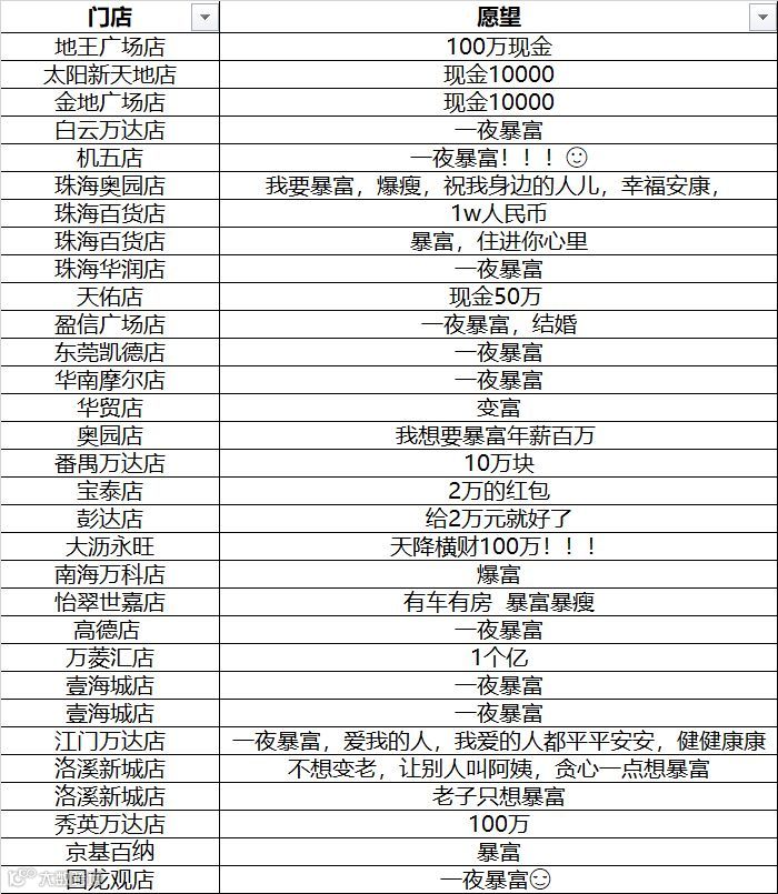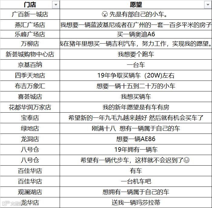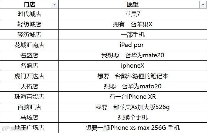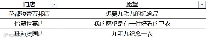 全国门店的近千条愿望