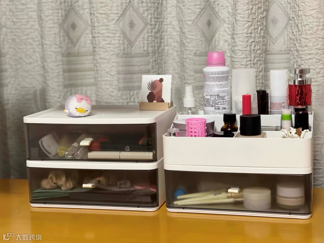真的需要化妆品收纳的话,建议选这种有盖的收纳盒吧,因为比起大件物品,这些小件的化妆品更难清洗,收纳盒有盖的话,清理它的外表要简单很多。