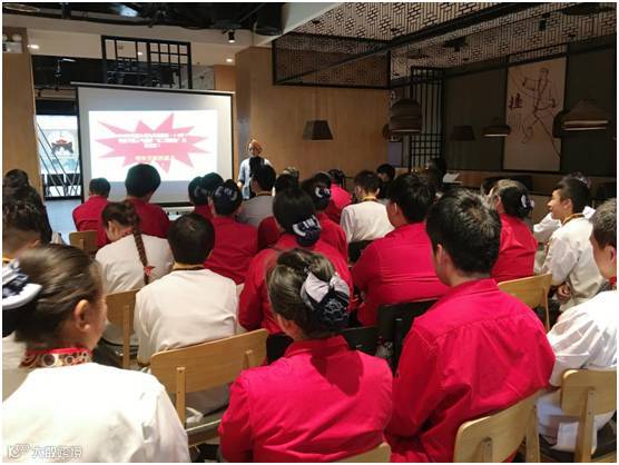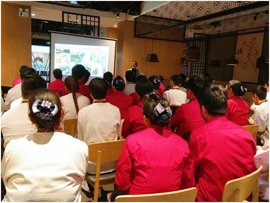 “我们作为九毛九人,要按照九毛九的价值观做事,大家伙要与九毛九一起进步”