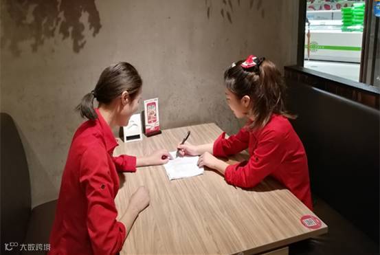 新来的红霞刚来店里,周媛部长就积极主动向红霞传授专业知识,让红霞更好地融入九毛九这个大家庭中来。
