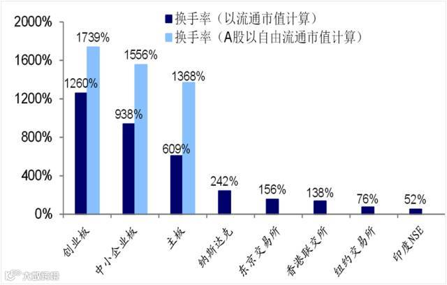 今年以来,A股的换手率大幅下降,主板降至2.6倍,创业板也不足7倍,同时股价也大幅回落,但换手率还是高于全球主要股市的水平,A股剔除银行股之后,估值水平与全球主要市场相比仍然高出很多。