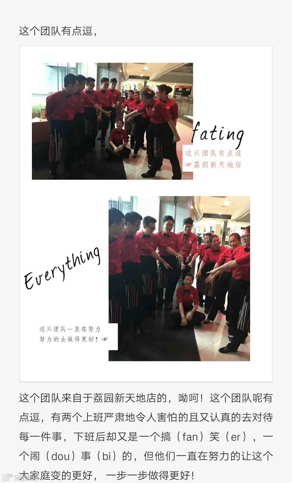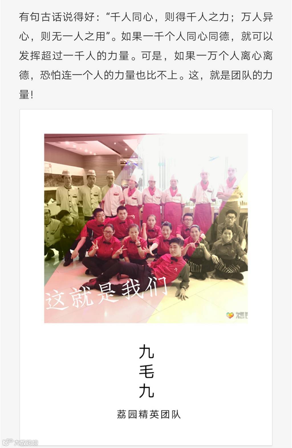 一个有趣的文化号,传播九毛九集团年轻有趣的企业文化~