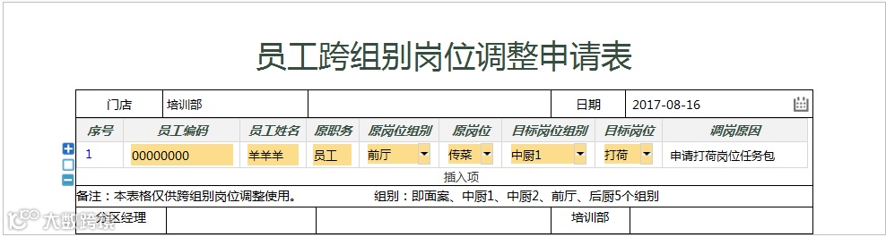 举个例子,比如传菜岗转岗到打荷岗。