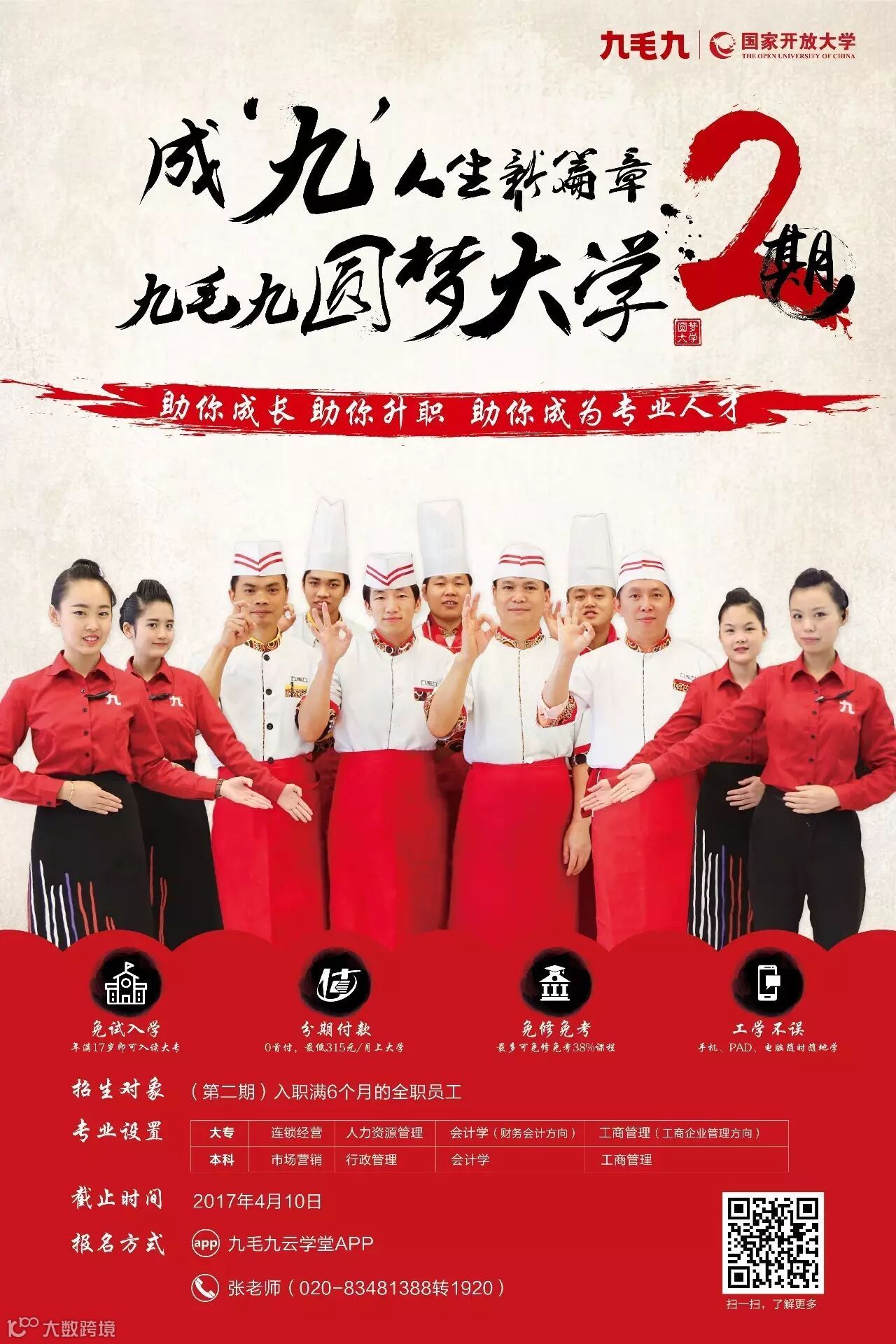 3月22日,国家开放大学工作人员联合九毛九圆梦大学学霸陈玉权、吴星到广州九毛九办公室,进行现场直播。两位学霸分享了自己的学习经验,不少在屏幕前观看的童鞋都表示受益匪浅,回去一定好好学习!记得说到做到哦。