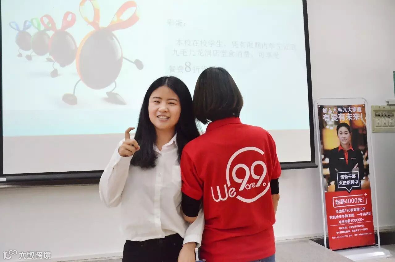 会上,大咖人资部总监崔弄宇一身轻便的着装就吸引了大家的注意, 现场童鞋直呼“亲切、漂亮”。崔总结合现实和自身经验,描绘了餐饮行业的前景,介绍了九毛九的体系,并传达了九毛九“爱”的企业文化,更以互动方式拉近大家的距离,现场高潮一波又一波。