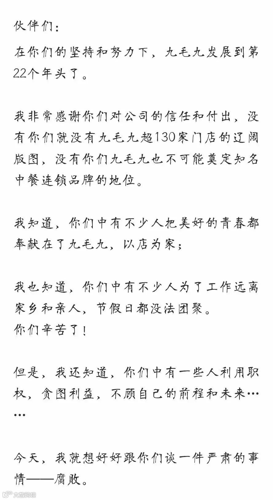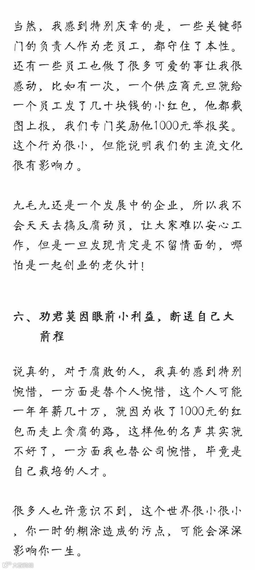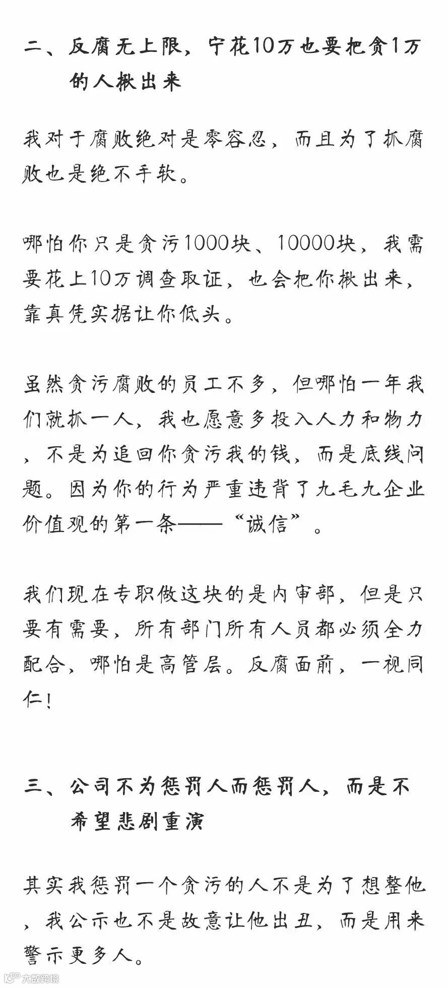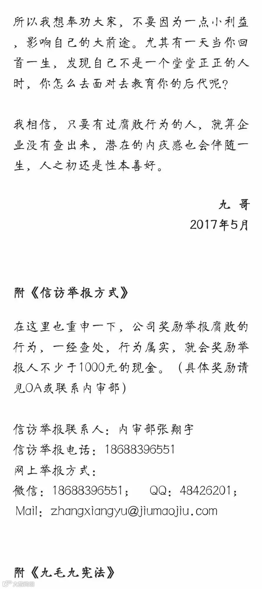 九哥内部信:宁花10万也要把贪1万的人给揪出来