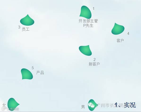【现场通过系统排列师的个案,代表会把情况如实的显现出来,图中把现场的人物用小点表示,尖的代表人物正前方,圆面代表人物的后背】