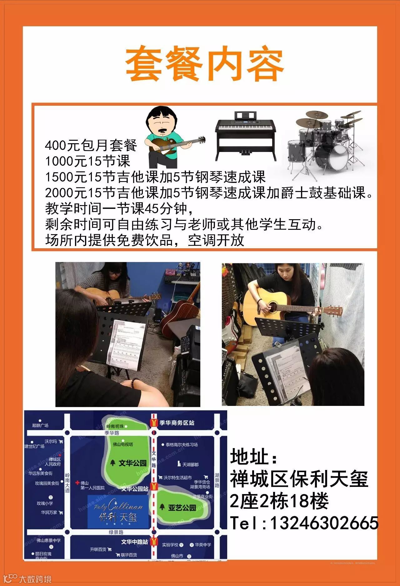 导读:音乐培训吉他 爵士鼓 电子琴 成为一个全能音乐人看报名详情报名1000元15节课的,加200元即可获赠价值4