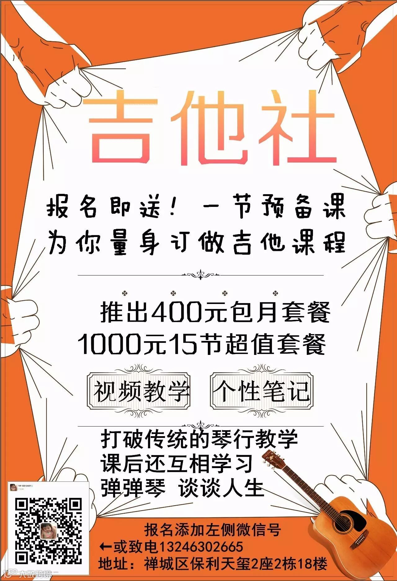 跟群主一起学吉他,送吉他,二人同行一人免费