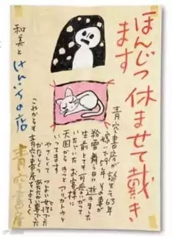“青空书房诞生63年,嫁给我59年的妻子,在细雪纷飞的日子离开人世,对于以前疼爱她的客人,她应该会在天国说声谢谢。她是温柔而坚强的女性,也是悲伤而温暖的妻子,以后也请,继续支持青空书房。”