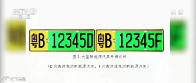 绿色车牌的位数由5位上升到6位,同时只用两种字母:D,F。D代表纯电动,F代表油电混合。