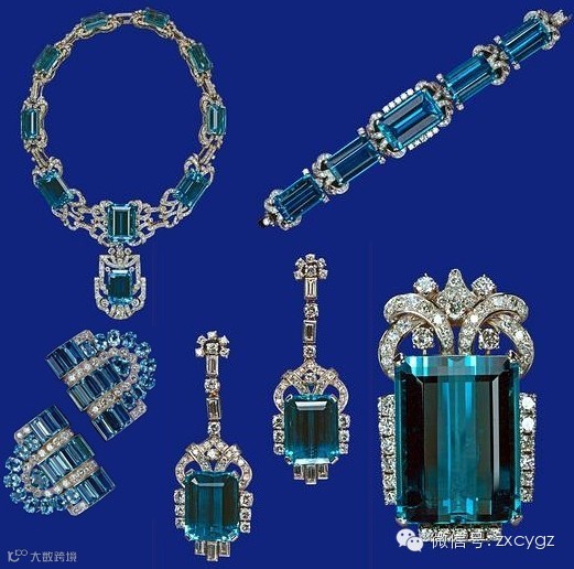 海蓝宝项链-海蓝宝石为主石,钻石为点缀的短项链,制造于1950年,至此极简主义的美学已经完全压倒奢华的装饰风格。