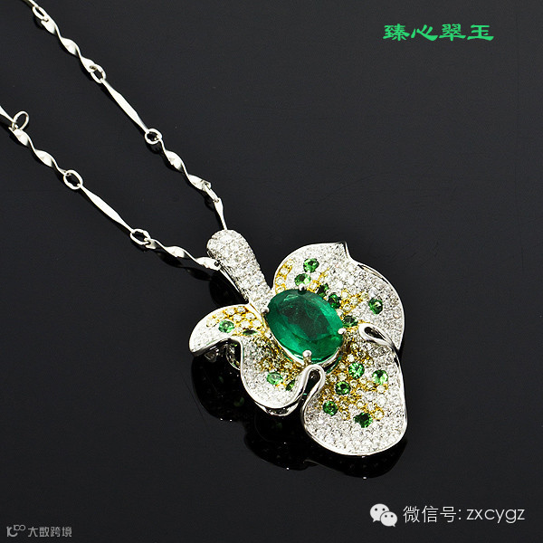 祖母绿的色彩来源是:微量的氧化铬使它呈现出晶莹艳美的绿色。
