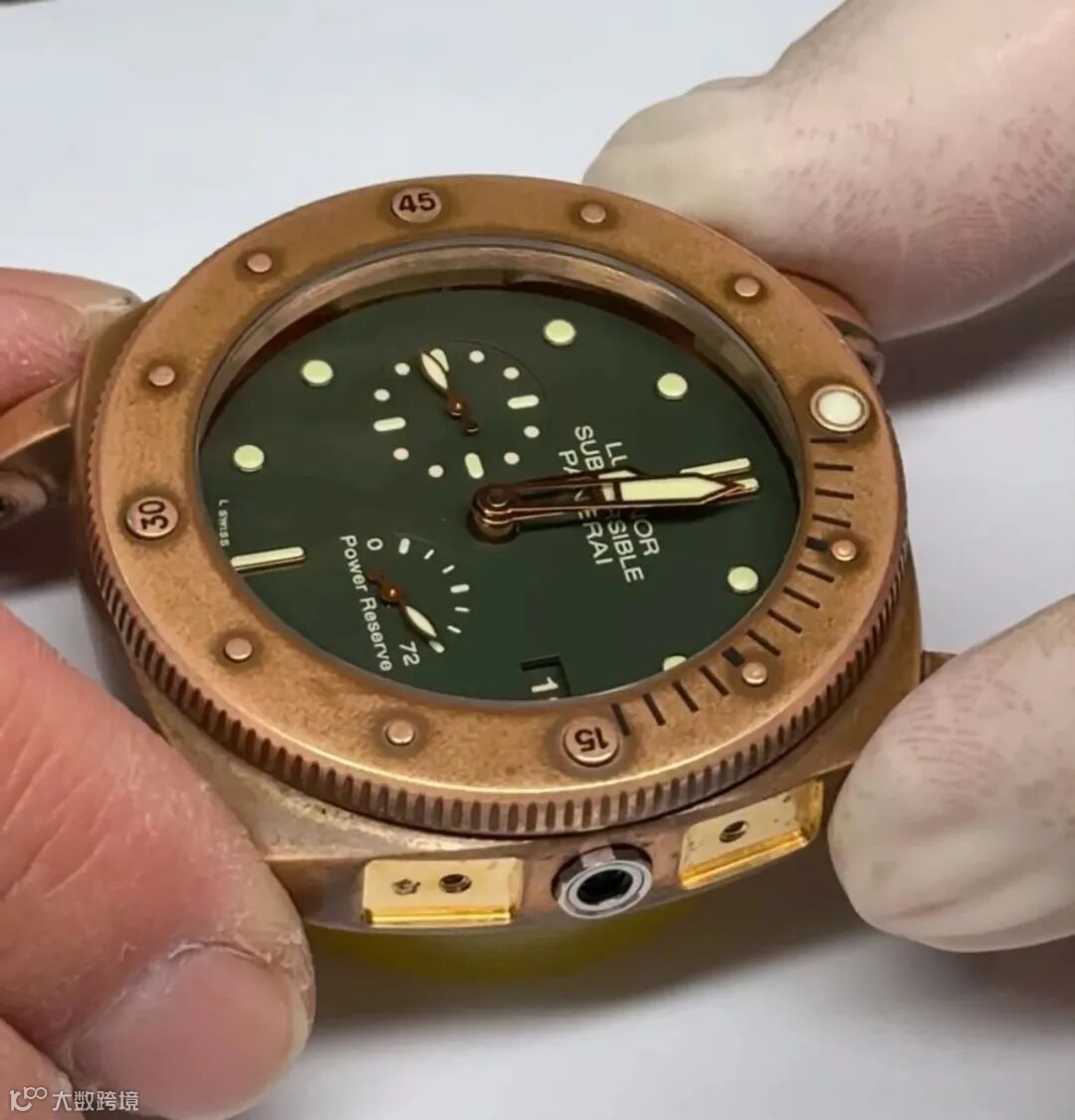 这枚沛纳海是特别版,全球限量,型号PAM00507,47毫米的大表径,表壳采用纯铜与纯锡的合金打造,具有很高的防腐蚀性和强韧度。随时间的流逝,表面会氧化产生铜锈、彰显独特个性。3点钟方向配置日期显示窗口,4点钟位置则是动力储存显示。而在9点钟位置则为小秒针表盘并带有秒针归零装置,实用性很强。