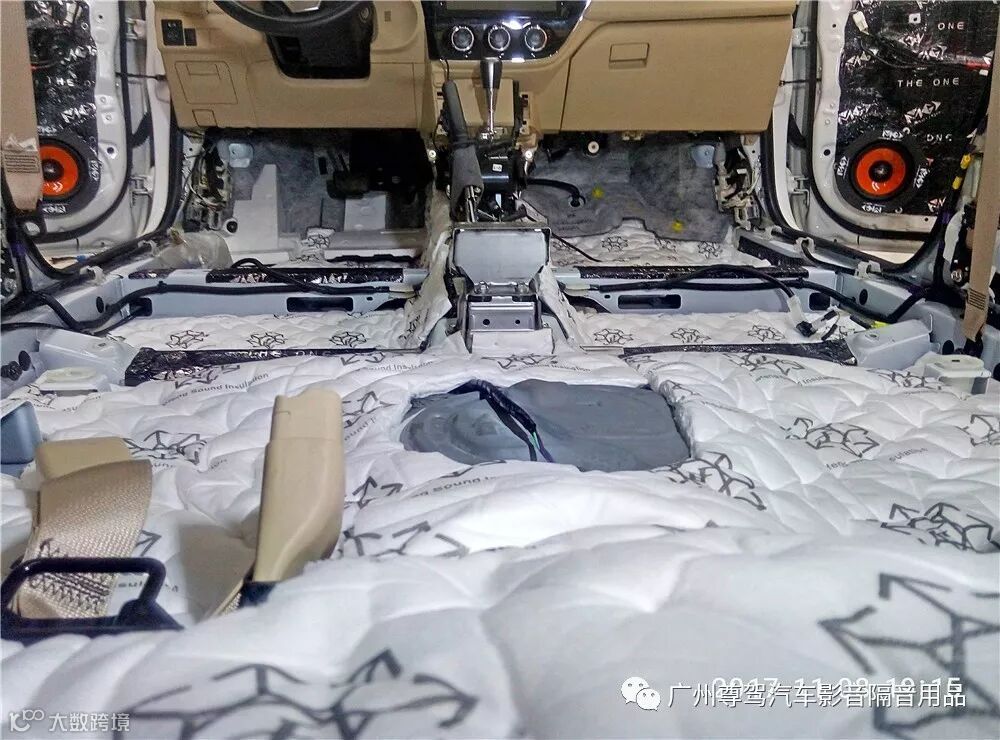 车地板的底盘隔音,是针对轮胎与地面的摩擦产生的路噪和胎噪,发动机和排气管噪音等通过底盘传递的噪音。一般施工流程是先用宝丰隔音材料(止震板)满铺车底,致使车地板的钣金得到强化,令底盘更扎实紧凑,能有效地抑制车底板共振和车外噪音传导。