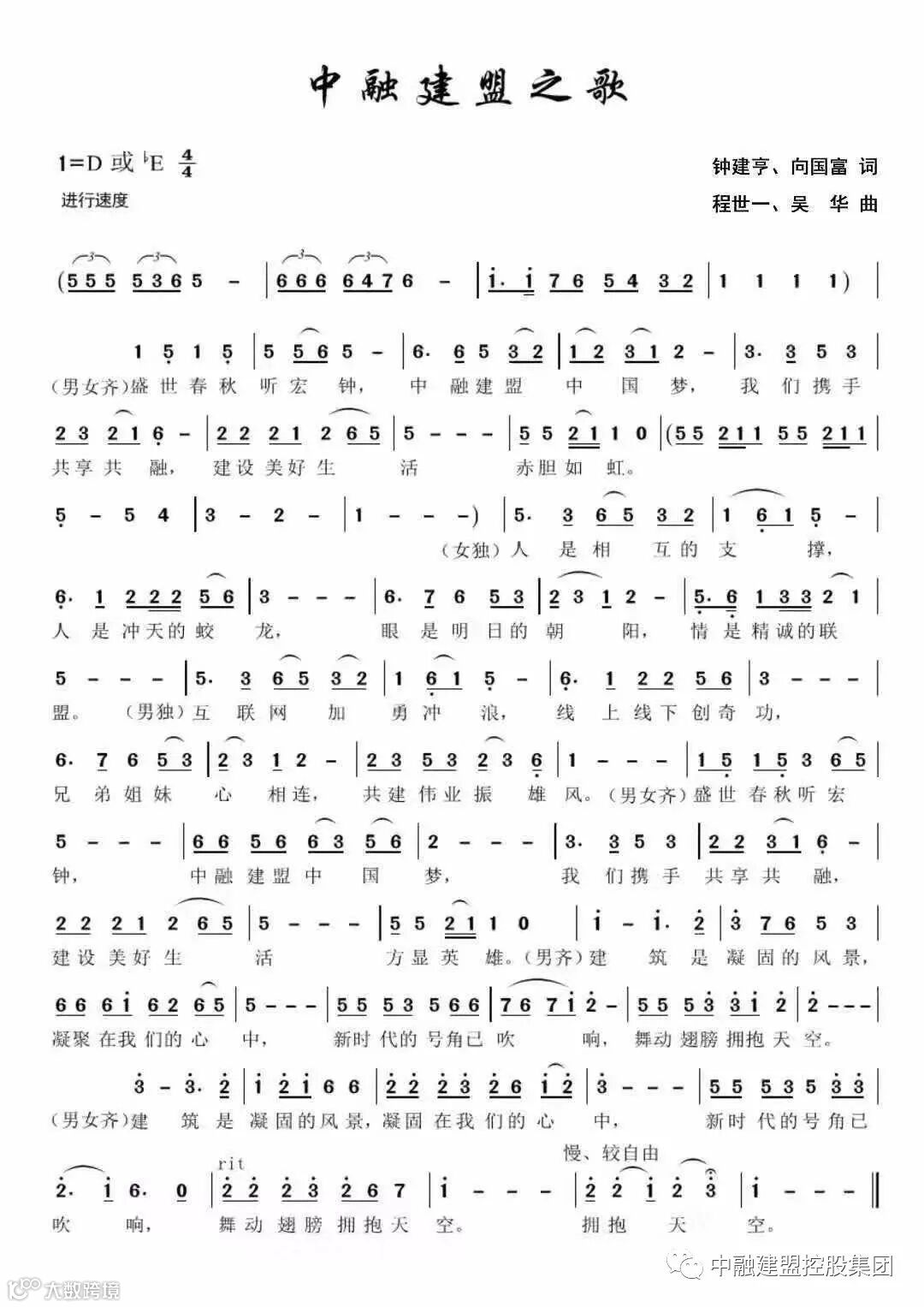 中融建盟企业歌: