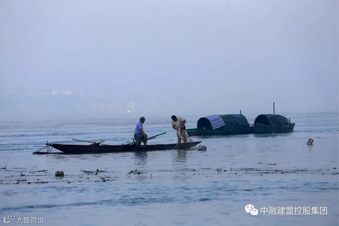 何德银告诉我,下午,从涪溪口放网过江,一般需要将近60分钟,涪溪口的渔民们都是下午放网,第二天早上收网,晚上夫妻俩住船上是常有的事。早上的码头,早霞从背山后爬过来,映得江水通红通红的,轮渡和渔船在江面交织,这个处在长江的拐湾处,古镇李庄河对岸的千年码头,又开始了鱼贩子与渔民之间的公平买卖。