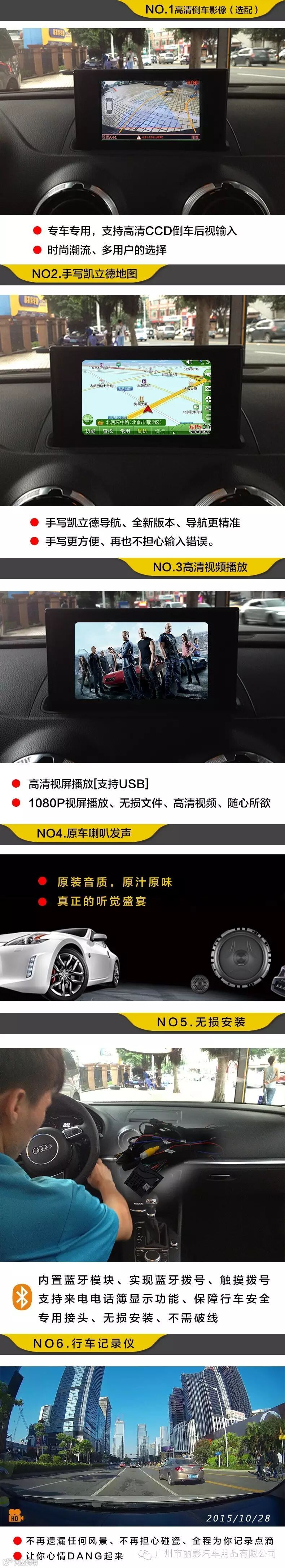 导读:适用车型、奥迪A6L、奥迪A4、奥迪A3、奥迪Q3、奥迪Q5原车安装实拍产品实拍