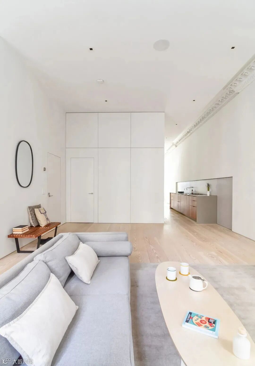 白色墙面与橡木地板,带来了清爽与明亮感,开放式的布局,行走中的人,成为了室内活力与生机的来源。