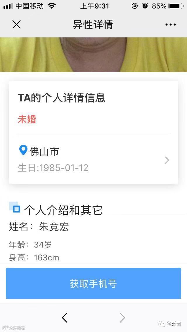 2、撒谎人朱某宏,微信昵称“朱电工”,男,2019年7月17日在微信公众号《征婚园》登记注册,登记婚姻状况为“未婚”,见截图: