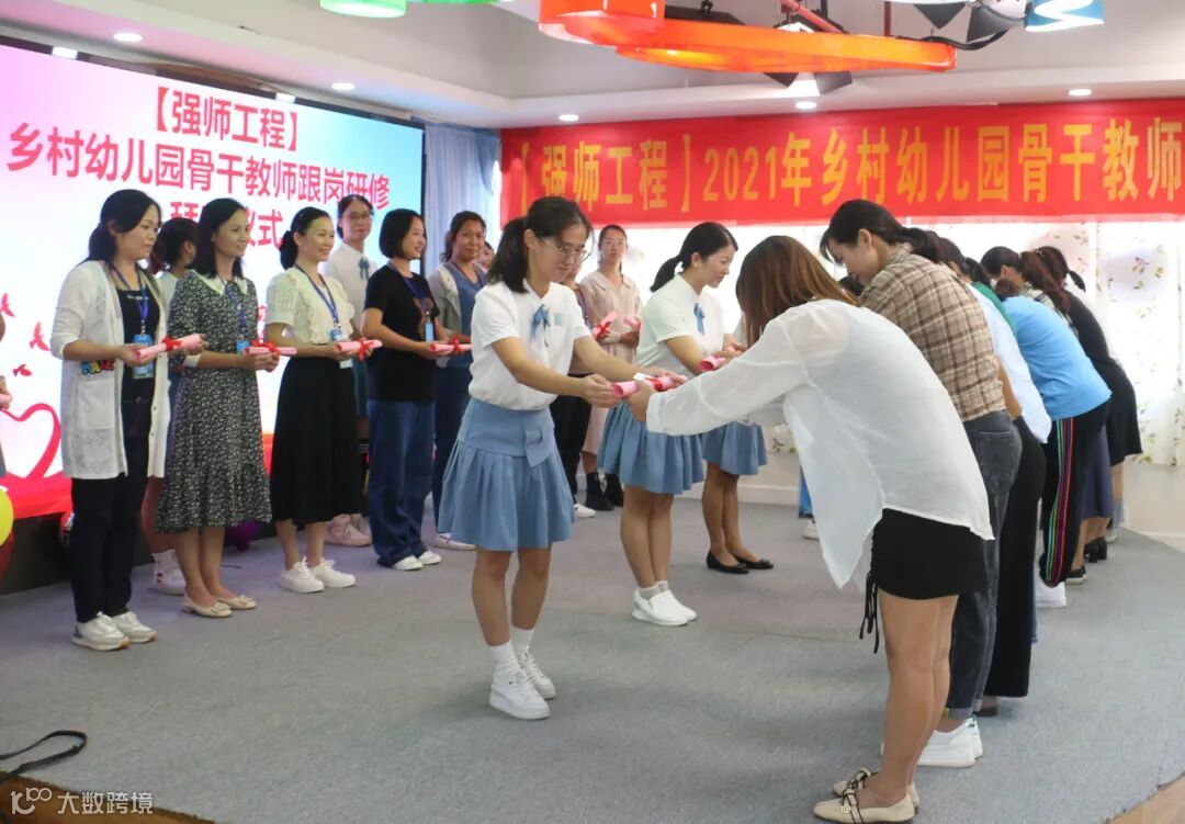乡村幼儿园骨干教师跟岗研修项目,是广东省实施“强师工程”提高教师队伍整体水平的重要举措。该项目由广东第二师范学院负责组织,由省内知名的示范性幼儿园具体承担实施任务。本批次安排了18名乡村幼儿园骨干教师到黄船幼儿园开展为期一周的跟岗研修。黄船幼儿园选派出八名教学骨干作为带教导师。