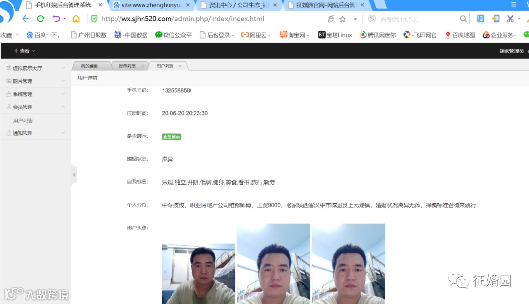 当天晚上8点23分,他在征婚园公众号做了注册,见下图:
