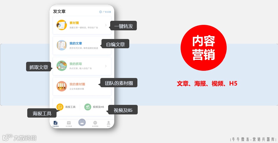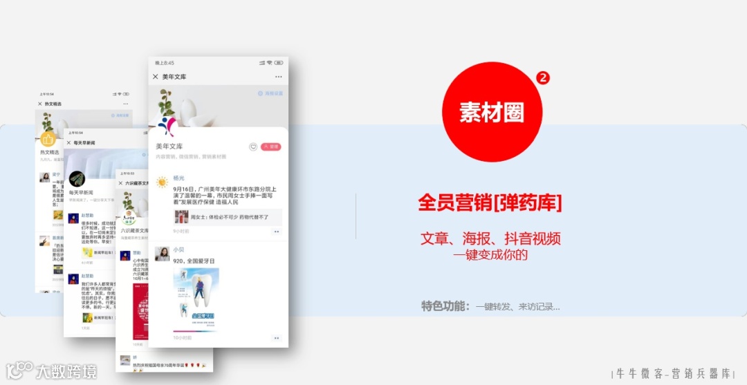 不仅如此,实体门店还可以用营销工具的素材圈功能,让店员能自己也参与到营销中来,通过热文抓取分享品牌文章,人人都做自媒体,通过流量报表的功能,提升员工的营销积极性,门店也可以通过流量报表排名来给员工发放奖励金,使得人人都能自愿做营销,轻松做营销。