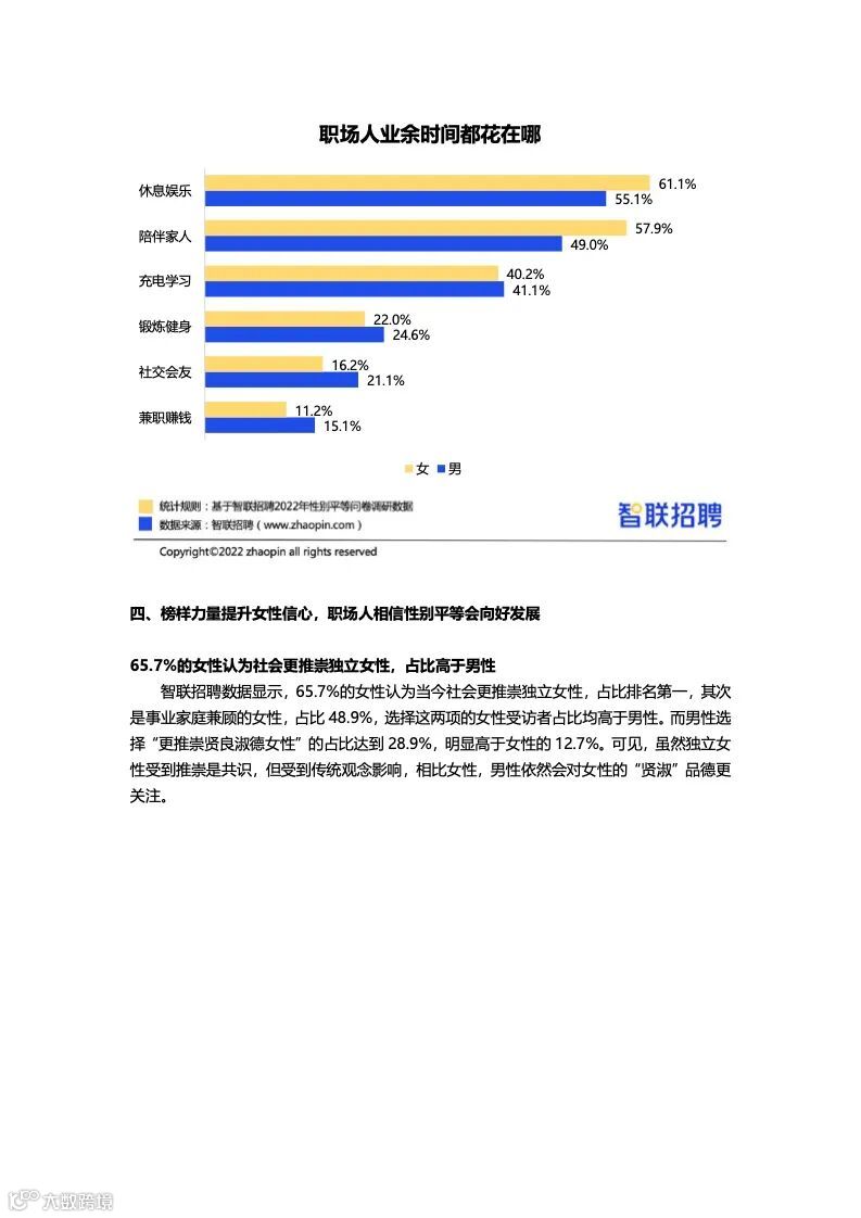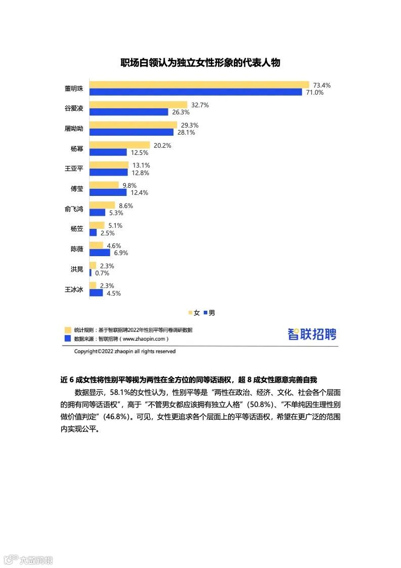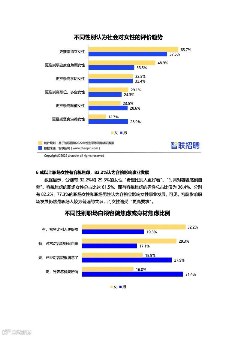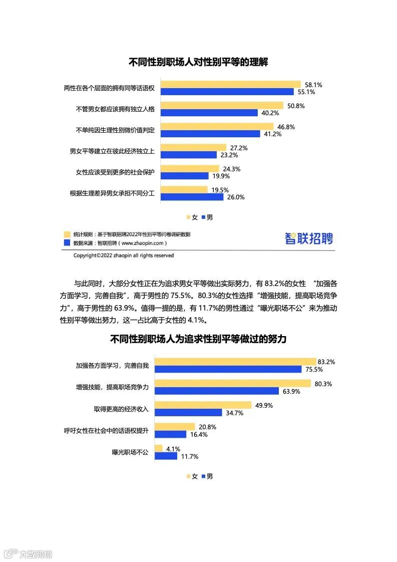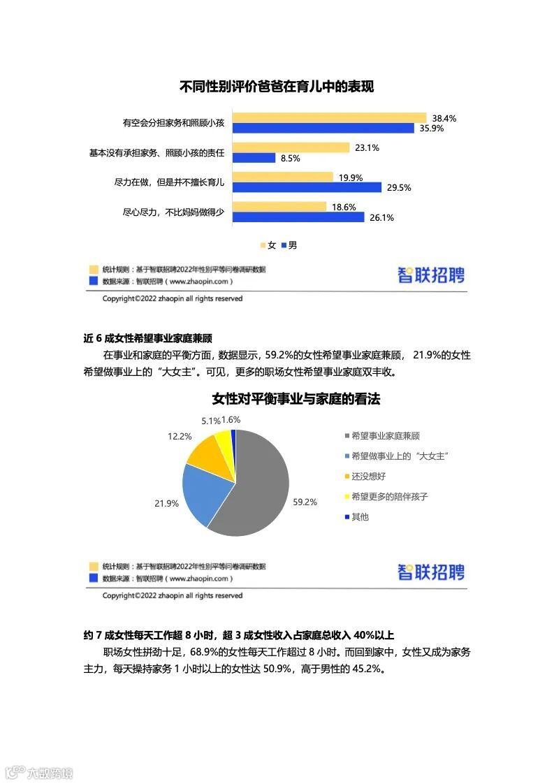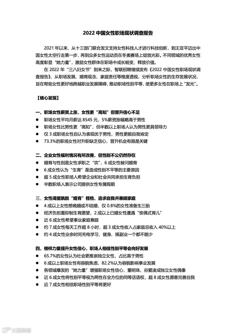 该报告从职场发展、婚育观念、家庭责任等维度透视,分析职场女性的生存发展状况。通过调研可以看出,女性正在通过自身努力实现职场上更大的发展,不断追求自我价值实现的同时,很多女性希望能够实现事业和家庭兼顾。